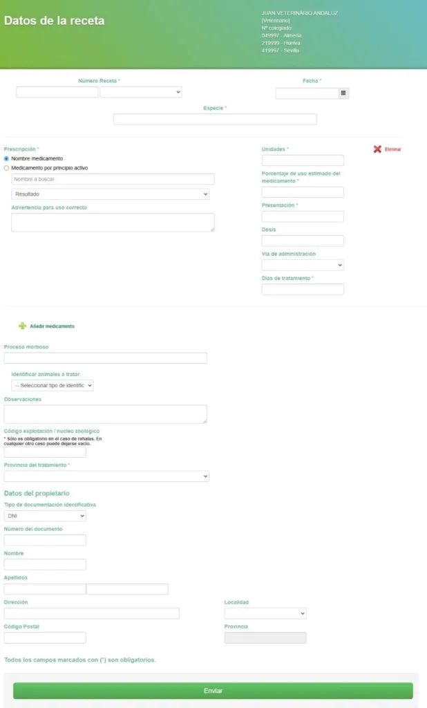 - Prescripción realizada mediante receta electrónica (dicha receta debe emitirse obligatoriamente a través de RECEVET).