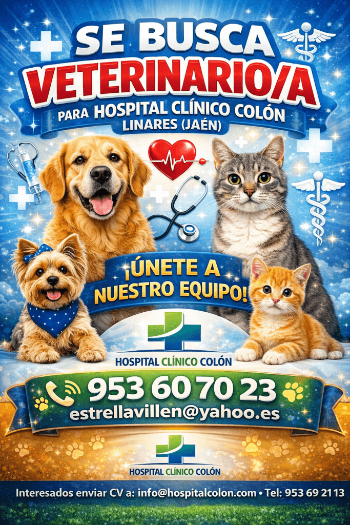 Se comunica una oferta de empleo para la posición de Veterinario/a en Hospital Clínico Colón, ubicado en Linares (Jaén).